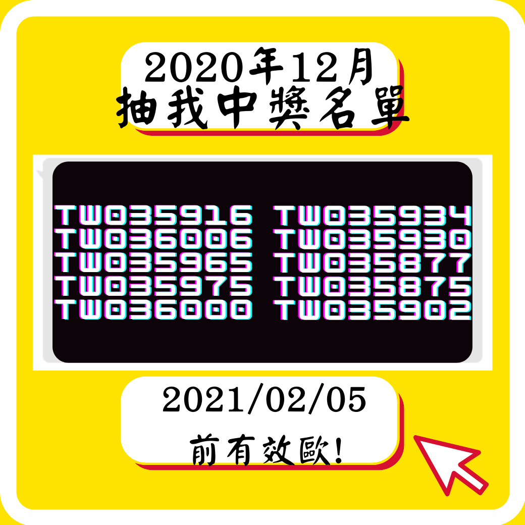 2021年| 一月 | <抽我>中獎名單