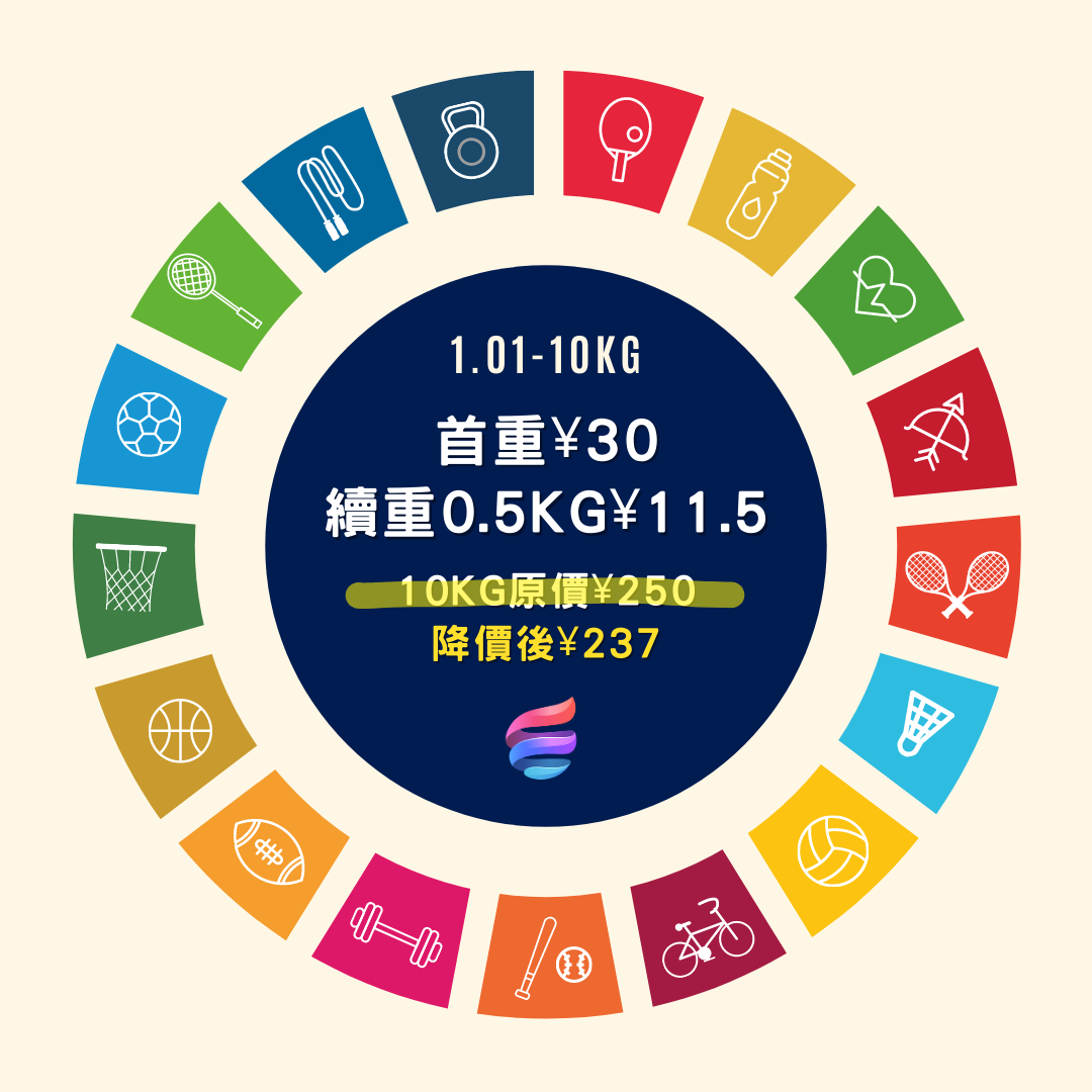 1.01-10KG首重¥30/續重每0.5KG¥11.5。
