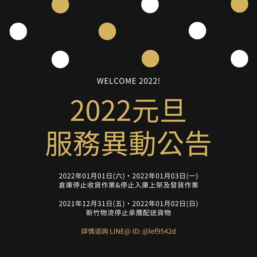 *發貨的包裹如未於12/30(四)送達, 需待01/03(一)恢復承攬配送後