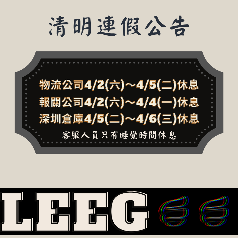 深圳倉庫2022/04/05(二)~2022/04/06(三)休息二日, 不收發貨.